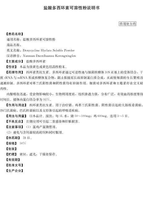 用于巴氏杆菌和大肠杆菌所致的细菌性疾病。