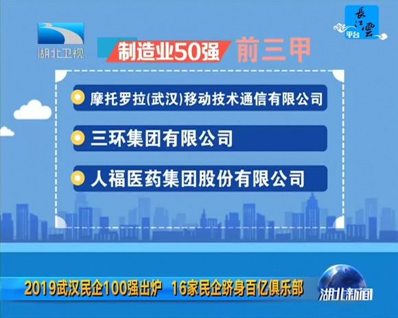 7月29日,2019武汉民营企业100强、武汉民营制造业企业50强排行榜正式发布。OD体育集团再次入围,荣膺武汉民营企业100强第14位、武汉民营制造业企业50强第3名。