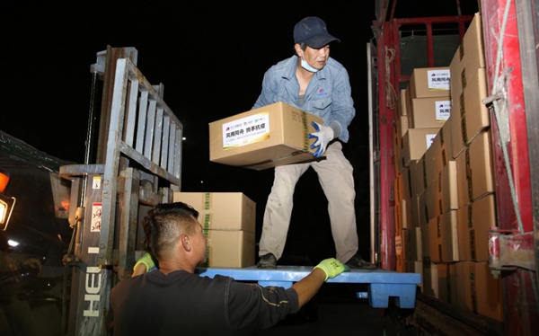 晚上9点,在湖北葛店人福药用辅料公司,33万件防疫物资经工作人员分拣,被迅速装车,这批物资将直接运往防疫物资急缺的阿拉善盟额济纳旗。湖北葛店人福药用辅料公司设备部员工小刘,得知这批物资需要紧急调运,主动放弃轮休,加入到物资的分拣装运队伍,目送着装满防疫物资的货车驶出厂区,他才舒展了一口气。“在去年武汉经历疫情的艰难时刻,是来自全国的力量帮我们走出了困境,只要我们齐心协力,终将战胜疫情。”小刘说。